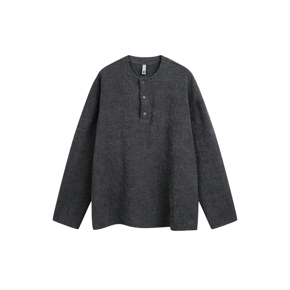 Henley Neck Casual Versatile Pullover Long Sleeve Shirt