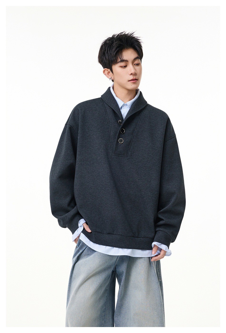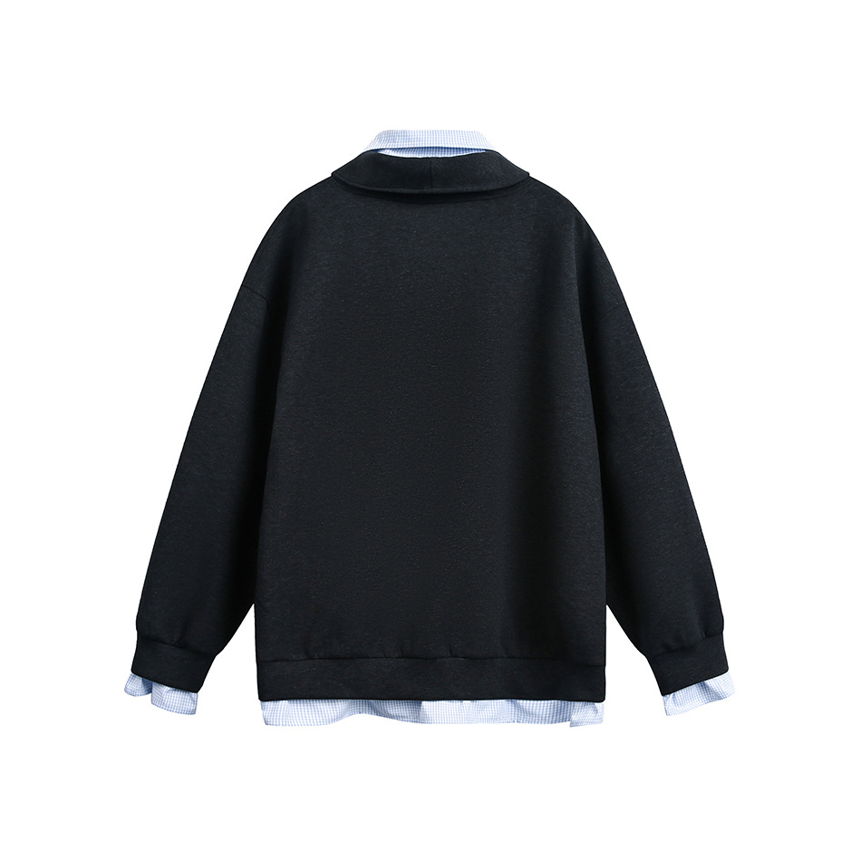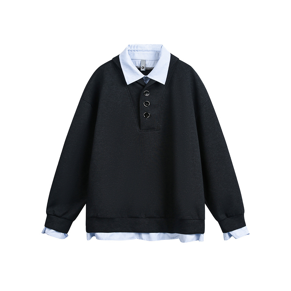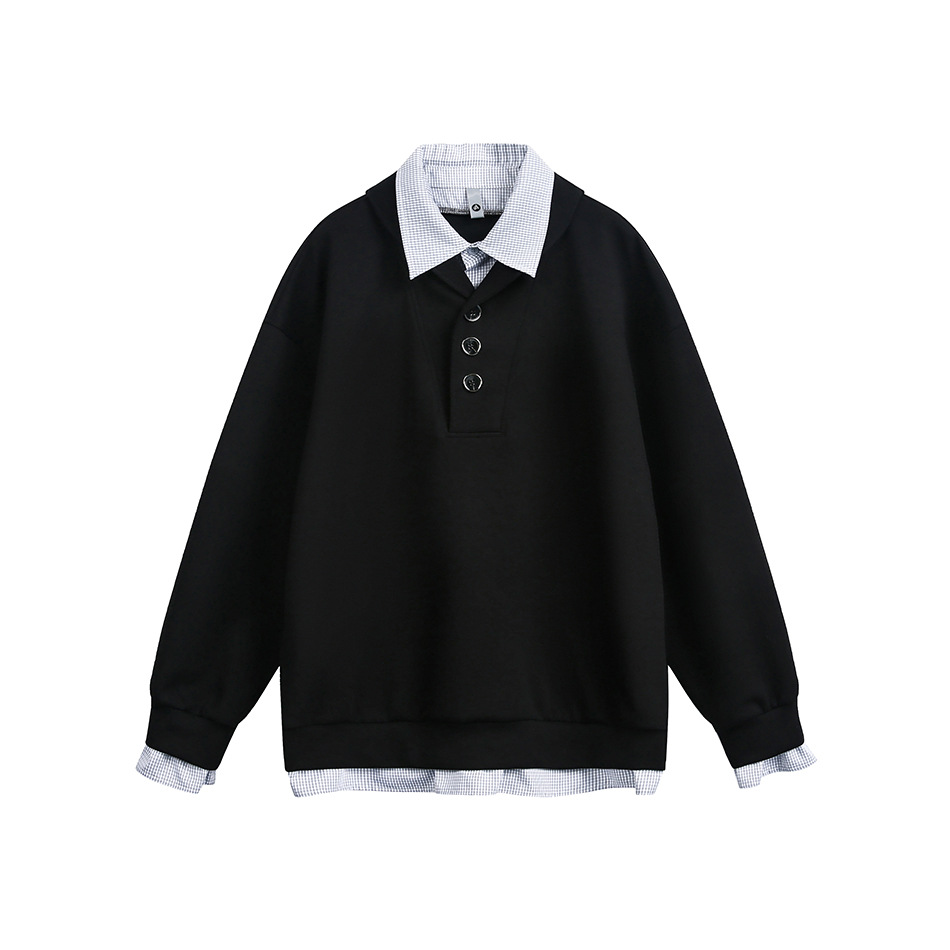 Lapel Hoodie Original College Style Pullover Sweatshirt Two-Piece Design Outerwear